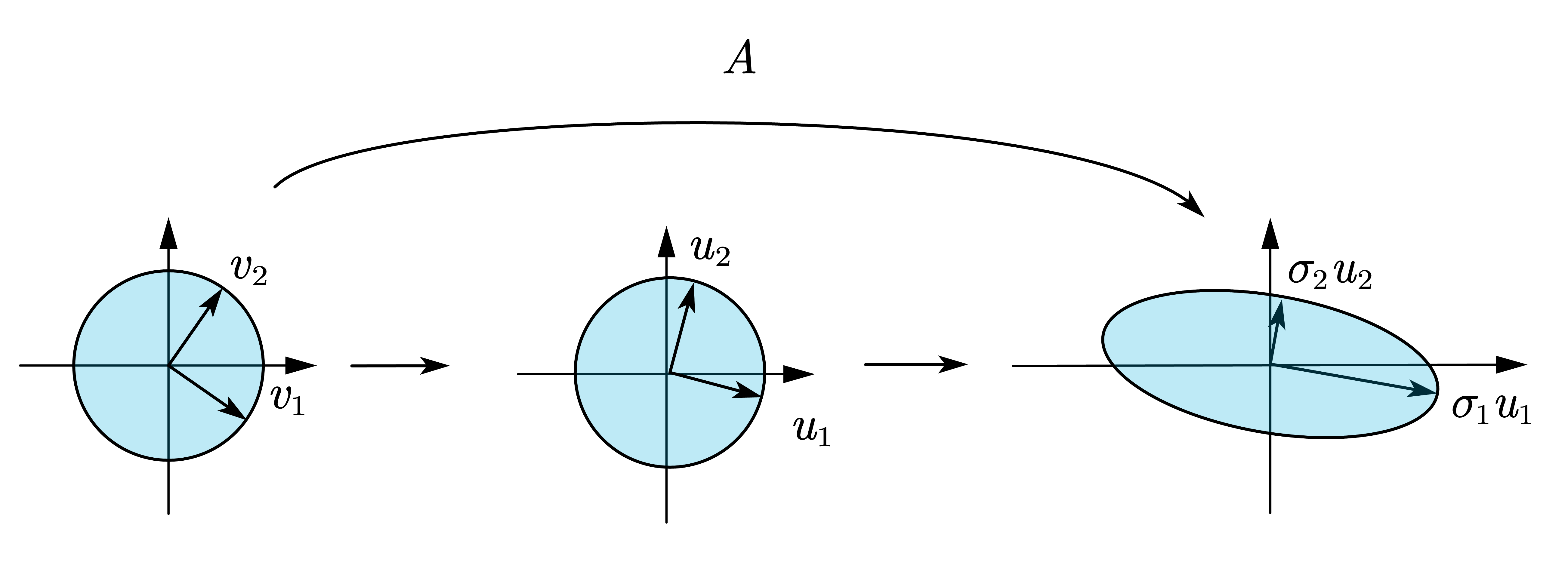 第一次变换 将右奇异向量变换为左奇异向量, 其中长度伸长了倍.